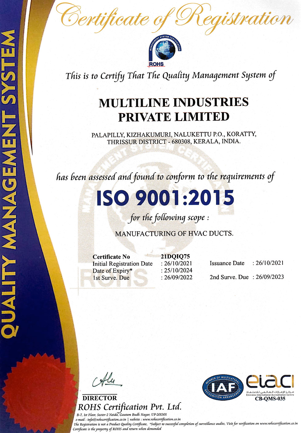 The company strives to integrate its facilities, skills, knowledge and experience for the benefit of the customer, by providing quality assured products that meets customer requirements. MULTILINE endeavors to continuously improve in all aspects of quality management system and comply with regulatory and legislative requirements and standards