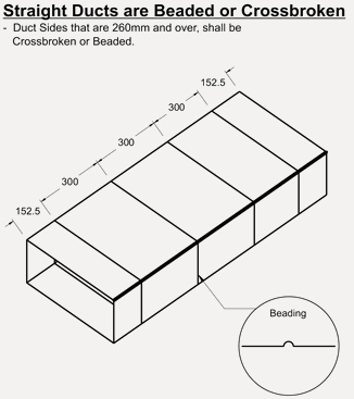 - After beading the parts are passed through various processes such as lock- forming, rolling, bending, flanging, spot welding and cleat bending as per the requirement of the fitting. The fitting parts are then moved to the assembling section, where the parts are assembled, while it’s add on flange are fixed, stiffness for large ducts are added etc. The factory foreman monitors all the processes so as to ensure the highest quality of products
